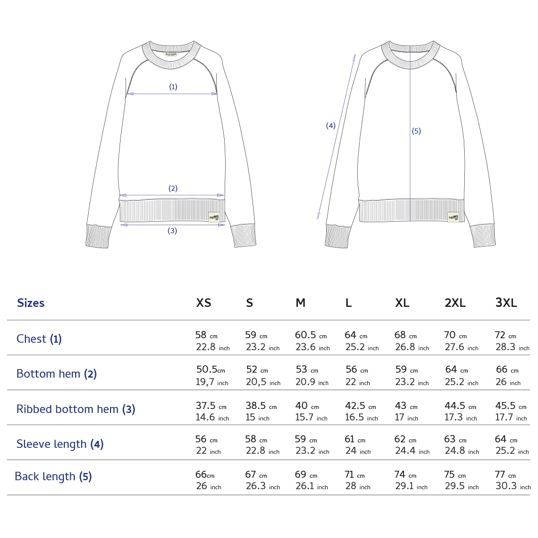 Der Kragen, die Ärmelbündchen und der Saum des Sweatshirts RAW 50 sind aus breitem Rippstrick gefertigt, der aus dem gleichen Garn und in der gleichen Farbe wie der Rest des Kleidungsstücks gestrickt ist, was Halt, Komfort und Langlebigkeit garantiert. Die sichtbaren Nähte, die durch eine kontrastierende Steppnaht hervorgehoben werden, prägen die Struktur des Sweatshirts. Eine Anspielung auf Workwear und ein Echo auf traditionelle Sweatshirts: langlebig und selbstbewusst in ihrer Konstruktion.