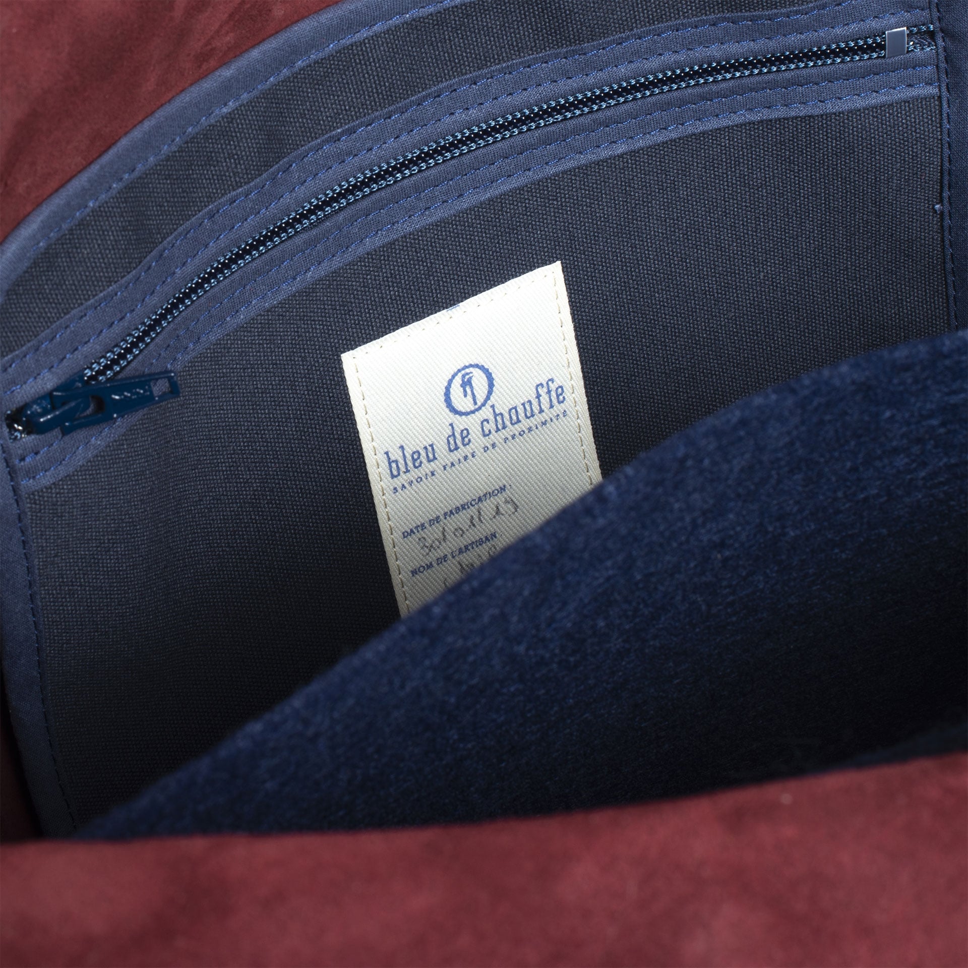 There is an inside cotton pocket featuring the Bleu de Chauffe label, signed and dated by the artisan who created the bag.
