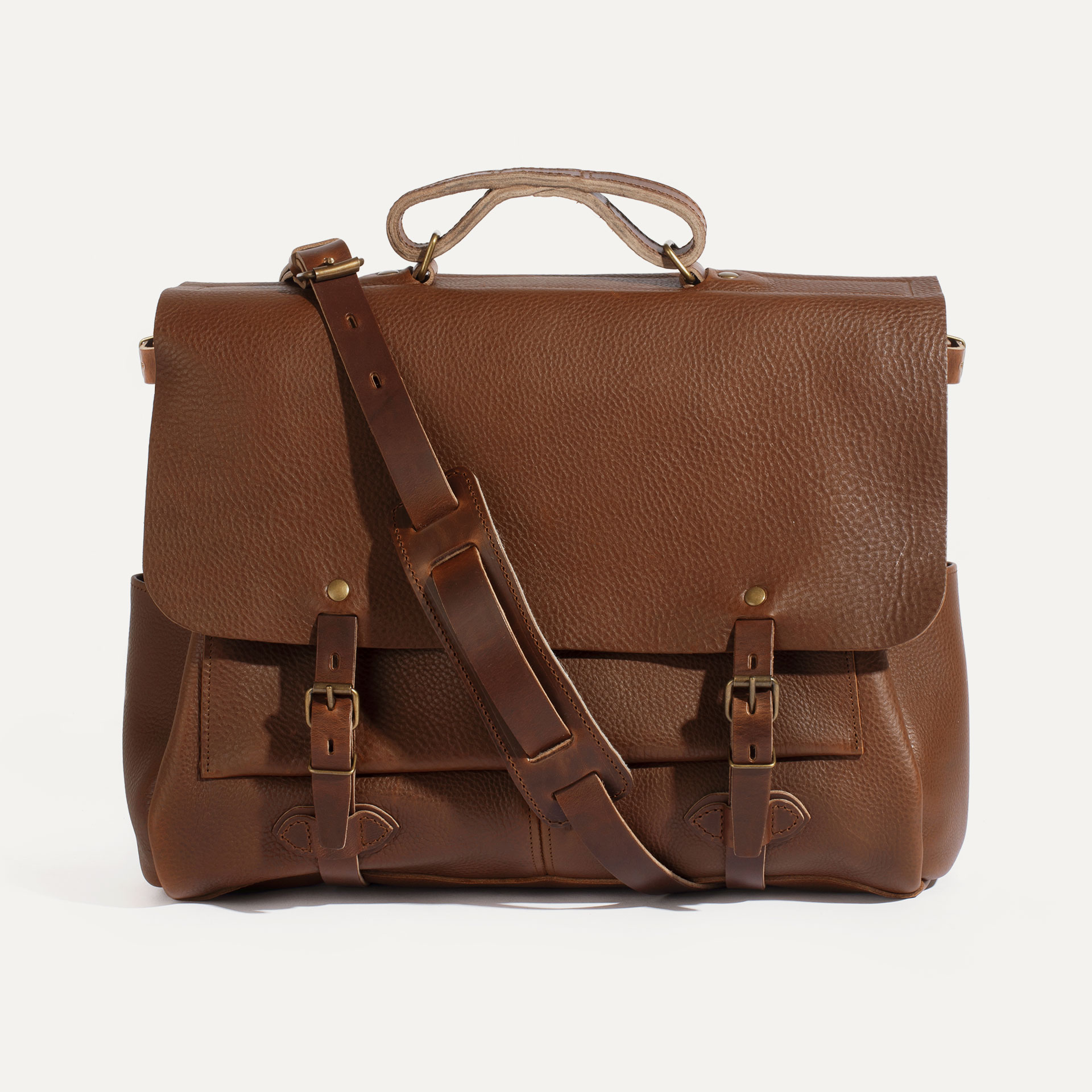 The Éclair is a mailman-style messenger bag that comes in three sizes: Irving, a large men’s mailman-style business bag, and Lucien and Louis, mailman messenger bags with a single compartment.
