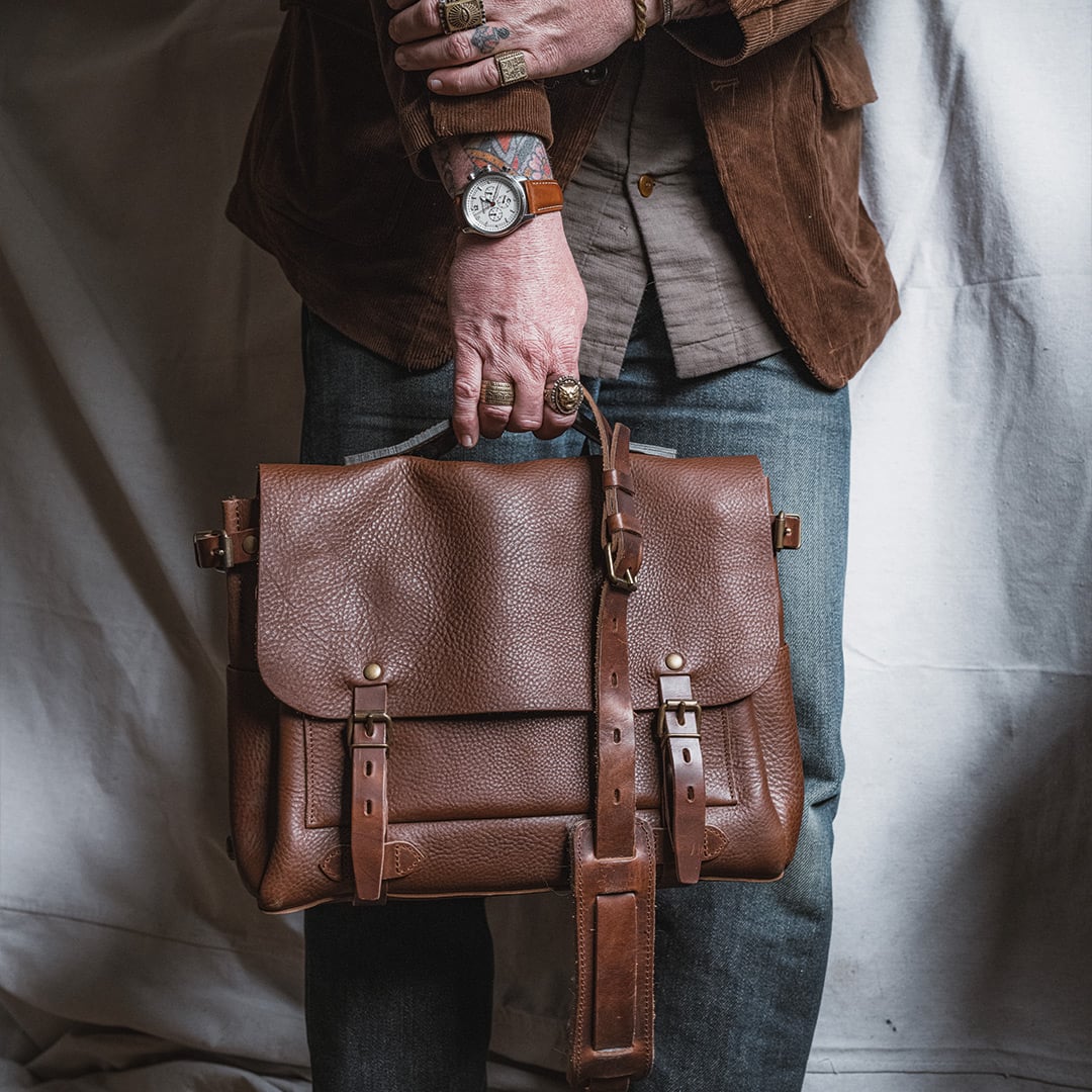 The rear carry handle, characteristic of the “letter carrier's carry”, is especially practical for quicker access to the inside of the bag, especially when cycling. American messenger bags are strongly inspired by this design.