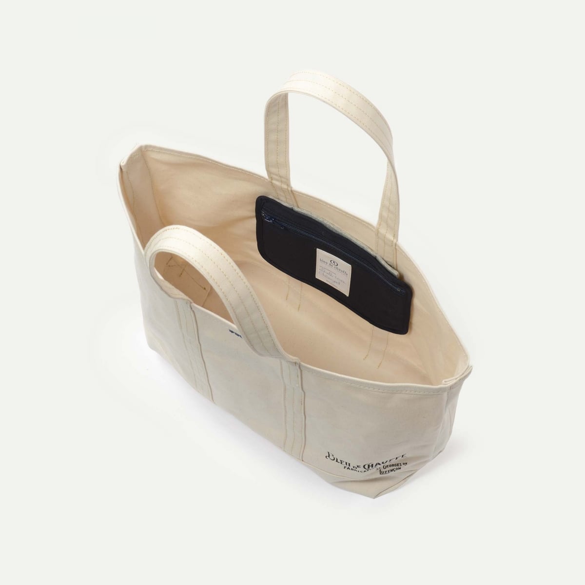 The Labor Day Bag is an emblematic piece of workwear apparel. This iconic tote is a nod to the famous bags used by paper-delivery boys in the United States at the beginning of the 20th century, and is one of the centerpieces of our new collection. At Bleu de Chauffe we have taken a fresh look at this classic from the workwear wardrobe, giving it a more structured shape with high-quality, sturdy canvas and adding an elegant touch with the distinctive handles and Bleu de Chauffe silkscreen-printed logo.