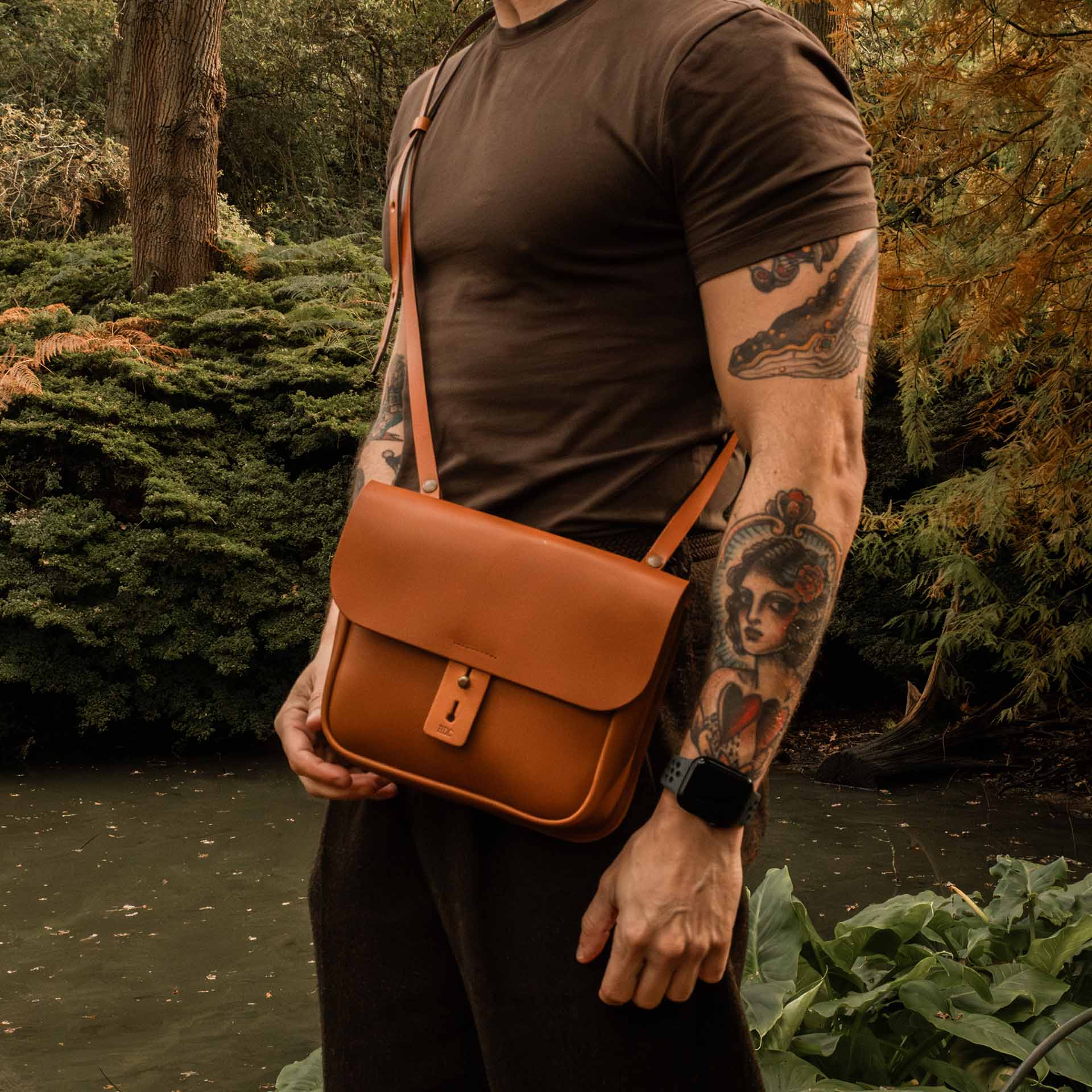Men's leather workwear satchel wear
