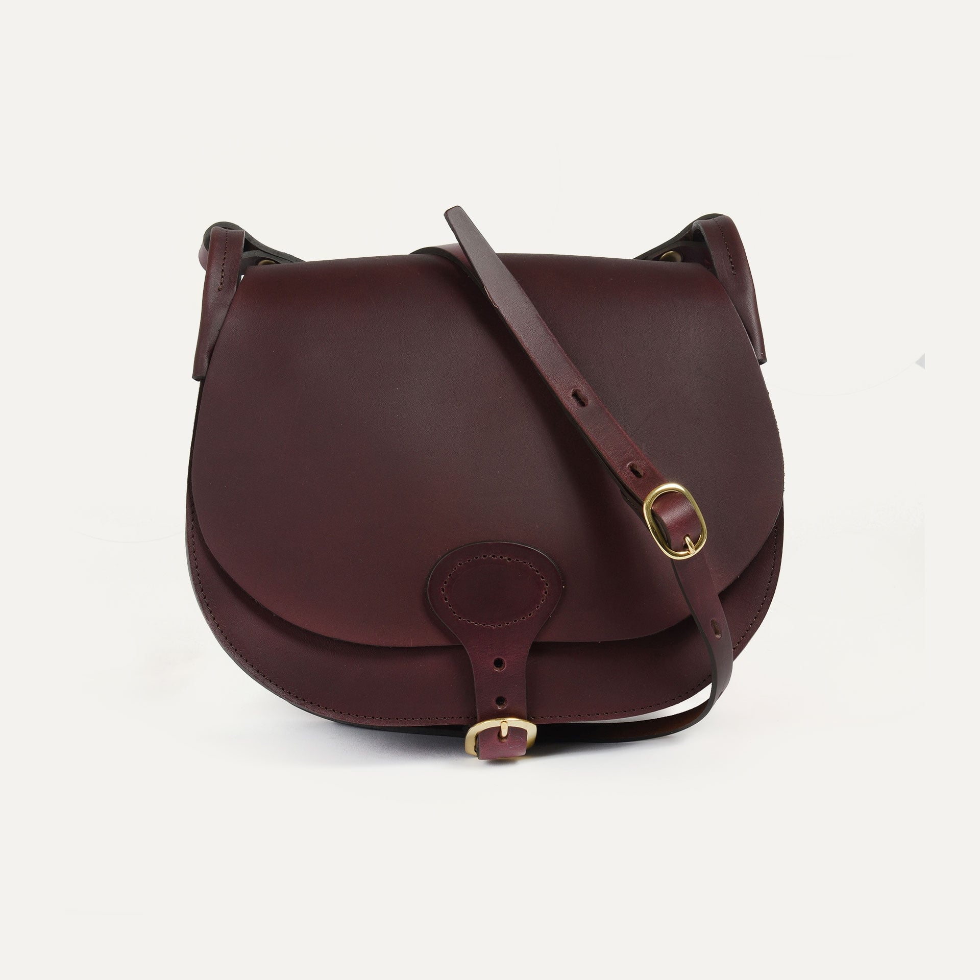 Avec sa silhouette structurée, ses courbes franches, son cuir rigide et sa technique de montage en point sellier, la gibecière Bleu de Chauffe se rapproche davantage de l’univers de la sellerie que de la maroquinerie. Une confection bien unique qui lui insuffle tout son caractère et charme.