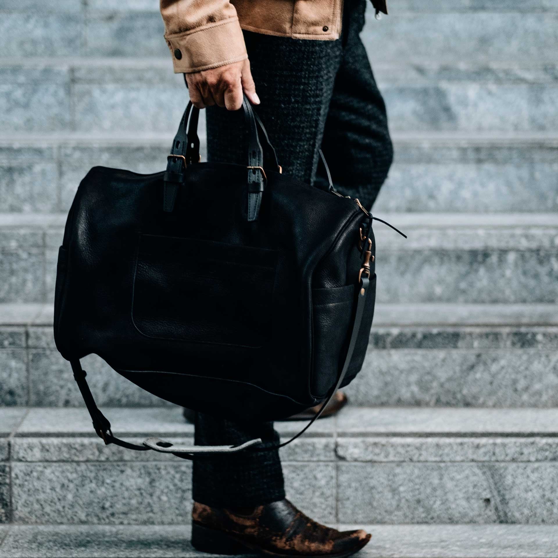 Le sac de voyage Hobo est la nouvelle signature chic de la gamme Bleu de Chauffe. Fabriqué en cuir tanné végétal Stone washed, le sac Hobo offre une totale résistance aux intempéries et protègera tout votre nécessaire de voyage. Les poignées, bandoulières et détails sont en cuir tanné végétal. Le sac Hobo possède trois poches extérieures.
