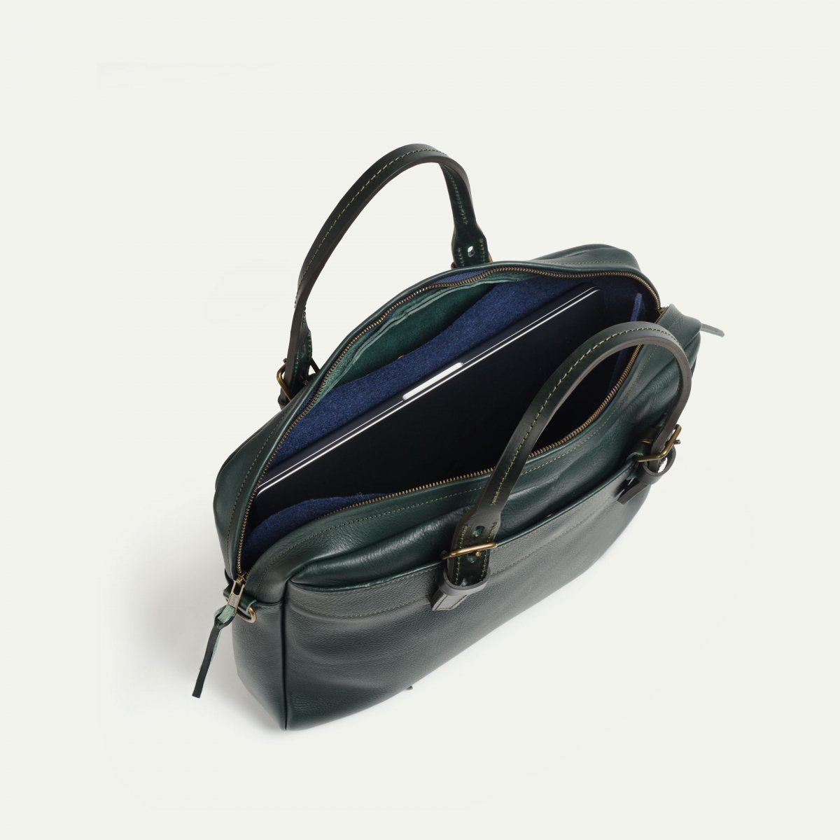 Le nouveau Porte document Folder en cuir tanné végétal se porte à la main ou en bandoulière. Business bag très fonctionnel avec aménagements astucieux pour faciliter les déplacements: une protection pour ordinateur 16 pouces MacBook Pro, une poche zippée intérieure et deux poches plaquées à l’extérieur. Bandoulière amovible avec patte d’épaule confortable doublée feutrine.