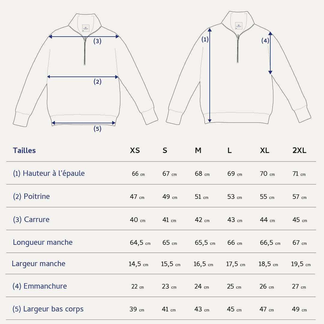 Col : Col montant zippé pouvant se porter ouvert ou fermé selon l’allure souhaitée. Pour ce zip camionneur, nous avons sélectionné une référence haut de gamme : un zip en laiton finition argent de la gamme Excella® de YKK. Entièrement poli, il offre une glisse parfaite et un contact doux contre la peau.