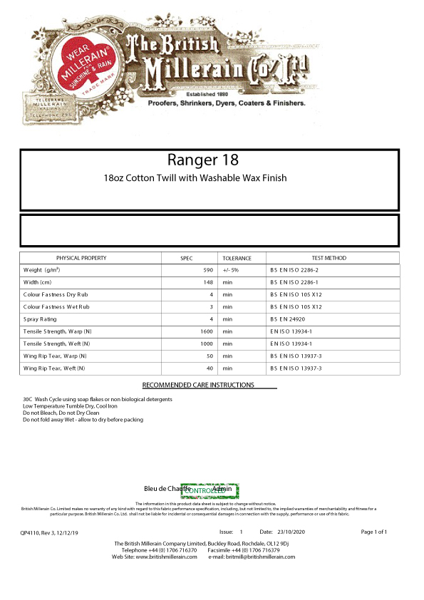 英國米勒林(British Millerain)創立於1880年,是英國知名的防水布料製造商,專精於生產超耐用的防水布料。其卓越工藝廣受認可,產品廣泛應用於各領域,從軍隊、海洋及海岸活動,到戶外活動愛好者皆能見其身影。